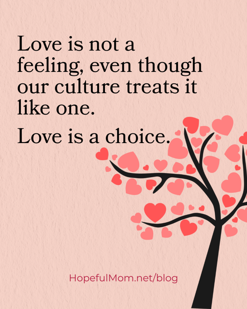 Love is not a feeling, even though our culture treats it like one. Love is a choice. Love is Not a Feeling: How Parents Can Model Selfless Love #healthyrelationships #reallove Share on XWhy Loving Parents Matter
